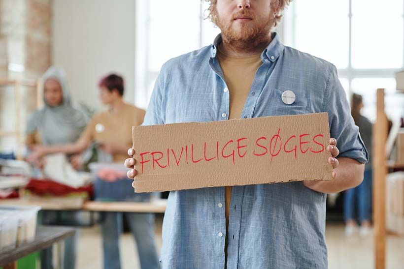 Hvid tekst på grøn baggrund: Det vigtigste sker i pauserne! Frivillighus til foreninger med socialt sigte
